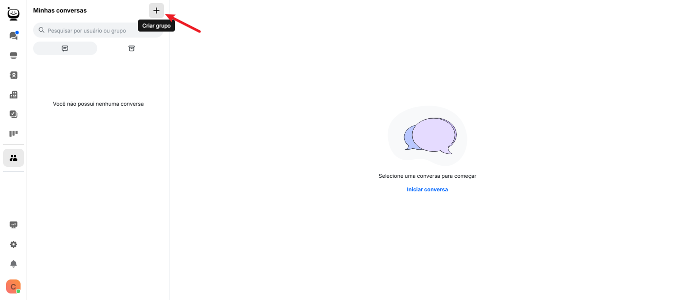 Passo 2: Ao abrir a seção de conversas, clique no ícone de + no canto inferior direito para criar um novo grupo