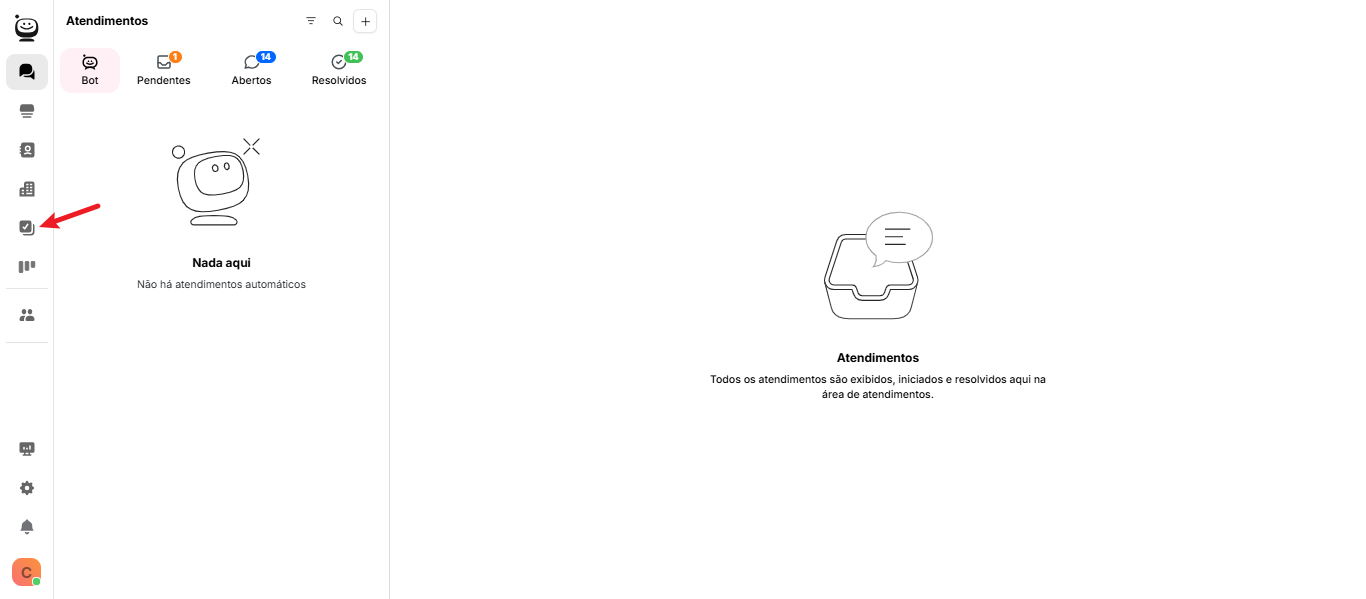 Passo 1: Acesse a aba Atendimentos e selecione a conversa desejada